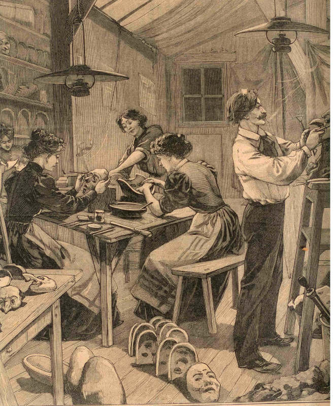 Ilustração de um ateliê em Paris que fabrica máscaras, 1897. (Imagem:Wikimedia Commons)