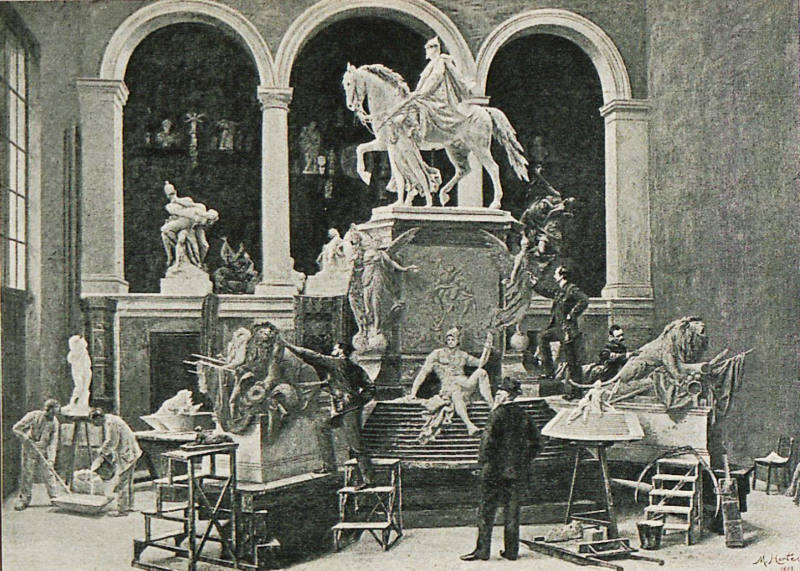 Ateliê do escultor alemão Reinhold Begas com seus assistentes, 1894. (Imagem:Wikimedia Commons)