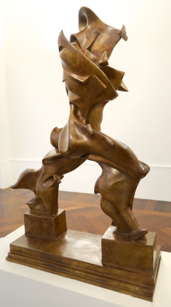 Acrescento uma reflexão final. A rejeição de Boccioni ao bronze como um material nobre do passado de certo modo justificou sua exploração de materiais “prosaicos”. A ironia é que sua obra mais icônica, Formas Únicas, deve sua fama às réplicas em bronze que estão espalhadas nos museus e que foram realizadas após sua morte. Mais uma curiosidade da história da escultura.